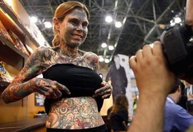 美国加州的朱莉亚·吉娜斯5月26日被《吉尼斯世界纪录》官方确定为是世界上纹身最多的女性。她全身95%的皮肤都被各式各样的纹身覆盖。据悉,朱莉亚起初得了一种代谢紊乱症,导致她的腿部皮肤无法曝露在阳光下,否则便会刺痛,朱莉亚便首先由腿部开始纹身,通过纹身遮挡阳光。没想到后来这种病症逐步向胃部、手部转移,朱莉亚的纹身面积也渐渐扩大,全身95%的皮肤都纹了身。而这种花纹也极具艺术价值。 朱莉亚·吉娜斯(Julia Gnuse)是一位因纹身而闻名于世的女性,她以全身95%的皮肤被纹身覆盖的纪录,荣获“世界上纹身最多的女性”称号。以下是对她生平的详细介绍: 早年生活 朱莉亚·吉娜斯于1959年1月18日出生在美国密歇根州弗林特市。她的早年生活与大多数人并无太大差异,然而,在她30多岁时,命运发生了转折。她被诊断出患有卟啉症(porphyria),这是一种罕见的代谢紊乱症。患病后的她,皮肤变得极为敏感,只要暴露在阳光下,就会起水泡,甚至留下深深的伤疤,如同三级烧伤一般,这给她的生活带来了极大的痛苦和困扰。 纹身起因与历程 初涉纹身:为了缓解病痛和遮盖伤疤,朱莉亚尝试了各种方法,但都效果甚微。她的一位整形医生朋友建议她,可以尝试用与伤疤颜色相近的肤色纹身来进行遮盖。于是,她抱着试试看的心态,开始在腿部纹身,这是她纹身之旅的开端。 纹身扩展:然而,尝试用肤色纹身遮盖伤疤的效果并不理想,难以达到完美的匹配效果。于是,朱莉亚决定尝试彩色纹身。起初,她只是在腿部纹身,后来随着病情的发展,卟啉症逐渐影响到她的胃部、手臂和背部等部位,她便将纹身范围逐步扩大到这些地方。 沉迷纹身艺术:随着纹身面积的不断扩大,朱莉亚逐渐沉迷于这种身体艺术形式。她身上的纹身图案丰富多样,包括丛林场景、卡通人物以及她最喜欢的演员等,这些图案不仅是为了遮盖伤疤,更是她个人兴趣和情感的表达。 获得吉尼斯世界纪录 经过多年的纹身历程,朱莉亚·吉娜斯最终完成了对自己身体95%皮肤的纹身覆盖。她的这一成就引起了吉尼斯世界纪录官方的关注,后来她被正式认证为“世界上纹身最多的女性”,从此成为了纹身界的一个传奇人物。这一称号让她受到了全球范围内的关注,许多媒体纷纷对她进行报道,她也因此成为了纹身文化的一个标志性人物。 公众亮相与影响 朱莉亚·吉娜斯并不因自己满身的纹身而感到自卑或羞涩,相反,她积极地展示自己的独特外观,并参与了一些电视节目的录制。她曾出现在《瑞普利信不信由你》(Ripley's Believe It or Not)节目中,向观众讲述自己的故事和纹身背后的意义。此外,她还在史密斯飞船乐队(Aerosmith)的音乐视频《Pink》中客串了一个小角色。她的经历激励了许多患有类似疾病或身体有缺陷的人,让他们明白可以通过独特的方式来接受自己、展现自己,勇敢地面对生活。 晚年生活与离世 尽管纹身没有从根本上治愈她的疾病,不能阻止皮肤在阳光下起水泡,但朱莉亚·吉娜斯对自己的纹身效果总体上感到满意,因为纹身让她能够更加自信地面对生活。不过,在她生命的最后几年,她却做出了一个令人意外的决定,开始接受激光治疗,试图去除身上的纹身。具体原因并未有公开的详细说明,或许是她对生活有了新的感悟,又或许是身体或其他方面的因素促使她做出了这样的选择。 2016年8月11日,朱莉亚·吉娜斯在加利福尼亚州富勒希尔牧场去世,享年57岁。她的离世让许多关注她的人感到悲痛,但她的故事却永远留在了人们的心中,成为了一段关于勇气、坚韧和自我表达的传奇。 朱莉亚·吉娜斯的一生,是与疾病抗争的一生,也是追求自我表达的一生。她用纹身书写了属于自己的独特人生篇章,尽管饱受疾病困扰,但她以一种独特的方式展现了生命的顽强与不屈,成为了纹身历史和医学相关案例中一个令人难忘的人物,她的经历也将继续激励着无数人勇敢面对生活中的挑战,坚持做自己。 |