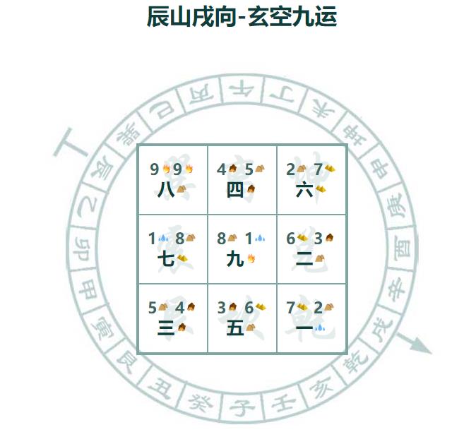 以下是玄空九运(2024-2043)辰山戌向(坐东南偏东、朝西北偏西,双星会坐格局,以旺丁为核心,向方需重点化二黑、七赤病符与破败煞,兼顾催财与化煞)九个宫位的布局建议,遵循“分析+建议”风格,对应飞星组合、气场特点与实操方案。 东南巽宫(9-9,九紫当令双星,吉) 分析:九紫火为当令旺星,双星同宫气场强旺,坐山需坚实有靠以固丁气,主喜庆、旺丁、事业晋升,是整宅丁运核心。若坐山无靠、空旷低洼或强水元素堆积,会致丁气涣散,还易引发情绪急躁与火灾隐患。 建议:坐山后方留高大建筑或山体作靠山,室内宜设长辈房、主卧,用高大家具(实木衣柜、书柜)稳气场;装修用红、紫、橙等火属性色调,摆红灯笼、红玛瑙、发财树催旺九紫;可放电视、暖灯等动气电器以火助火;配少量铜质摆件平衡火气;忌空旷无靠、低洼杂乱与强水元素(鱼缸、大镜),保持通透明亮,最大化旺丁、稳事业与丁运根基。 西北乾宫(7-2,七赤破军+二黑病符,凶) 分析:七赤属金主破败、口舌,二黑属土主健康隐患,土生金易催旺七赤煞气,易引发家人健康问题(尤其肠胃、妇科)与破财、人际纠纷,不利宅内女性与经商人士。向首若闭塞、逼压或阴暗杂乱,会让病符与破败气叠加,丁财难聚。 建议:向首外峦头宜开阔低平、有水流或道路灵动之气,室内设客厅、餐厅以纳气;挂六帝钱、摆铜葫芦等金器泄二黑煞气,配铜貔貅、白水晶化七赤;装修以金属色、白色为主,增强气场流通;忌动土、尖锐物品与阴暗杂乱,保持通透明亮,减少灾祸并守护财运。 正北坎宫(1-8,一白生气+八白退气财星,吉) 分析:一白属水主学业、贵人与未来财运,八白属土主稳财,一白水生八白土,有相生之吉,利少男与学业发展,还能助力财运汇聚。若作卫生间、杂物间或幽暗杂乱,会浪费吉气,导致学业受阻、贵人运弱、财运难聚。 建议:宜设儿童房、书房、健身房,外峦头喜有山;室内放高大家具稳八白气场,摆铜文昌塔、金属貔貅等金器,配水养植物(富贵竹),金生水、水生木催旺一白;装修以白色、蓝色为主,增强一白能量;忌杂乱幽暗、强火元素装饰与积水,保持明亮通风,助力学业提升与贵人运、财运汇聚。 正南离宫(3-6,三碧是非+六白官星,平) 分析:三碧属木主口舌官非,六白属金主事业权力,木克金易引发官非纠纷、人际矛盾,不利宅内掌权者与职场人士。若阴暗杂乱或强木元素堆积,会加重冲克,事业受阻、是非频发。 建议:宜设办公区、书房,摆木质书架、绿植增强气场;配铜文昌塔、金属笔架等金器,金生水、水生木通关;放红色摆件以火助木,平衡金气;装修以绿色、蓝色为主,营造办公氛围;忌大量金属家具、尖锐物品与杂乱堆积,保持安静通透明亮,助力事业稳定并减少口舌纠纷。 东北艮宫(5-4,五黄煞+四绿文昌,凶) 分析:五黄属土主灾祸,四绿属木主学业、思维,木克土制煞但五黄煞气易反伤,易致学业受阻、家人健康与安全受威胁,尤其不利宅内儿童与学子。若作卧室、厨卫或阴暗杂乱,会让灾祸气扩散,文昌运衰、丁运受损。 建议:宜设客房、储物间,挂铜铃、摆铜葫芦等金器泄五黄土气,配文昌塔、绿植(文竹)旺四绿;装修以绿色、蓝色为主,增强文昌气场;放红色摆件以火助木,木克土泄病符气;忌杂乱堆积、阴暗潮湿与强土元素,保持安静通透明亮,守护家人安全并助力学业。 西南坤宫(4-5,四绿文昌+五黄煞,凶) 分析:四绿属木主学业、思维,五黄属土主灾祸,木克土制煞但五黄煞气易反激,易致学业受阻、家人健康与安全受威胁,尤其不利宅内儿童与学子。若作卧室、厨卫或阴暗杂乱,会让灾祸气扩散,文昌运衰、丁运受损。 建议:宜设客房、储物间,挂铜铃、摆铜葫芦等金器泄五黄土气,配文昌塔、绿植(文竹)旺四绿;装修以绿色、蓝色为主,增强文昌气场;放红色摆件以火助木,木克土泄病符气;忌杂乱堆积、阴暗潮湿与强土元素,保持安静通透明亮,守护家人安全并助力学业。 正东震宫(2-7,二黑病符+七赤破军,平) 分析:二黑属土主健康隐患,七赤属金主破败、口舌,土生金易催旺七赤煞气,易引发家人健康问题(尤其肠胃、妇科)与破财、人际纠纷,不利宅内女性与经商人士。若作卧室、卫生间或阴暗潮湿,会让病符气扩散,健康与财运双损。 建议:宜设厨房、储物间,厨房炉灶属火,可火生土泄二黑煞气;摆陶瓷、玉石等土属性饰品生金,放铜貔貅、白水晶化病符;装修以土色、金属色为主,增强气场流通;忌作主卧、卫生间,保持干燥整洁,避免强水元素,减少病气滋生并守护财运。 正西兑宫(6-3,六白官星+三碧是非,平) 分析:六白属金主事业权力、贵人运,三碧属木主口舌官非,木克金易引发官非纠纷、人际矛盾,不利宅内掌权者与职场人士。若阴暗杂乱或强木元素堆积,会加重冲克,事业受阻、是非频发。 建议:宜设办公区、书房,摆金属家具、铜龙龟等金器稳六白气场;配红色摆件以火通关(木生火、火生土、土生金);装修以金属色、米黄为主,增强贵人运;忌大量木质家具、尖锐物品与杂乱堆积,保持通透明亮,助力事业稳定并减少口舌纠纷。 中宫(8-1,八白退气财星+一白生气,平) 分析:八白属土主稳财,一白属水主贵人、财运,一白水生八白土,有相生之吉,利财运汇聚与贵人扶持。若杂乱堵塞、强火元素堆积,会让吉气涣散,财运难聚、贵人运弱。 建议:宜留白通透,不堆重物,摆铜貔貅、金属聚宝盆等金器,配水养植物(富贵竹)催旺一白;装修以白色、